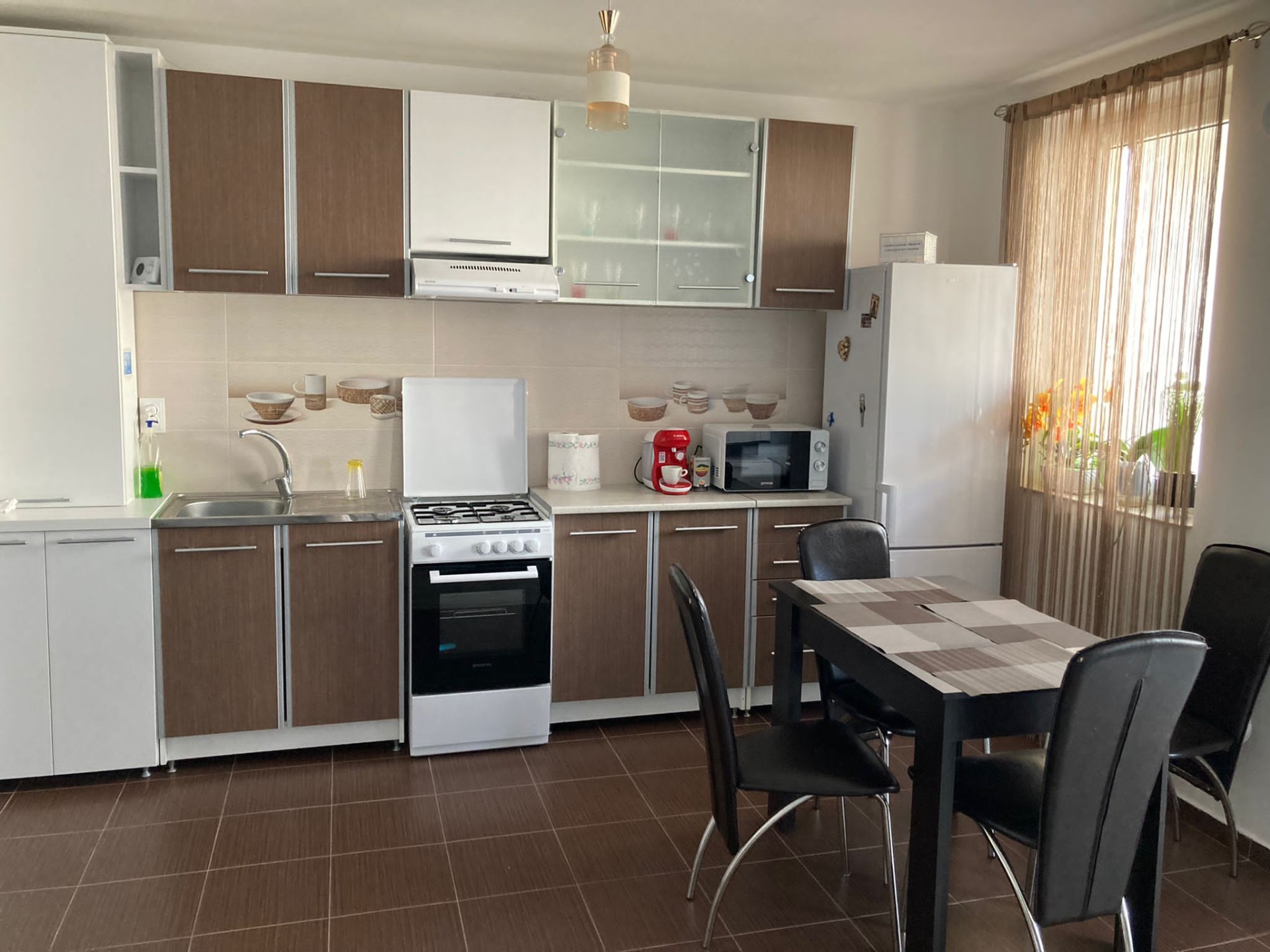 Apartament cu dormitor, cameră de zi, 2 canapele extensibile, baie, balcon. Capacitate de cazare - maximum 4 persoane (adulti+copii).
