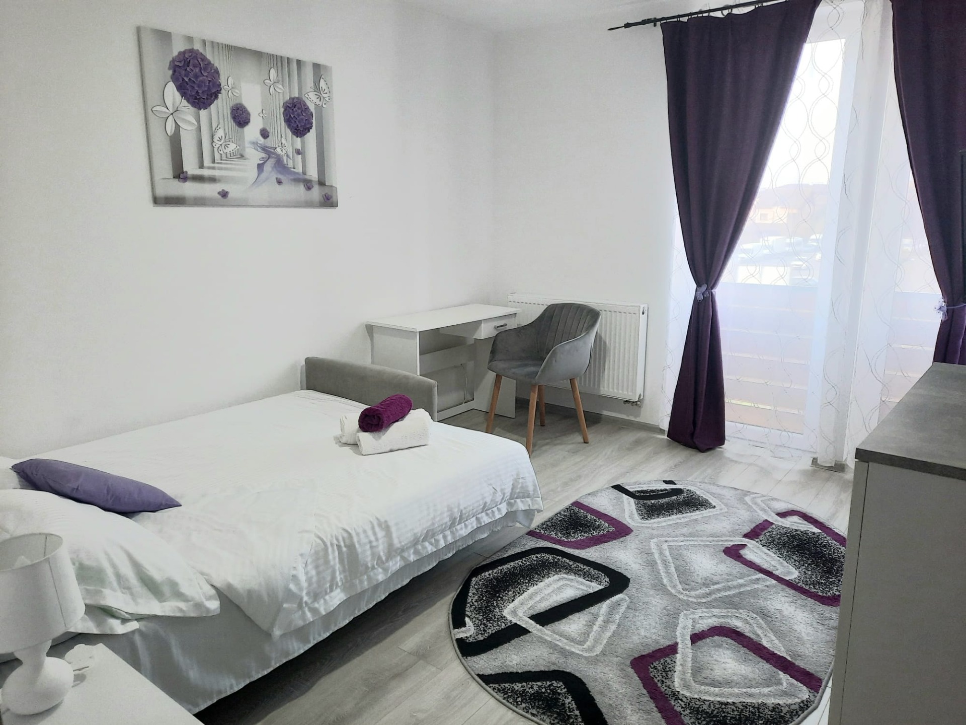Nu-ți face griji, ai la dispoziție un birou cu un scaun confortabil, priză lăngă birou.